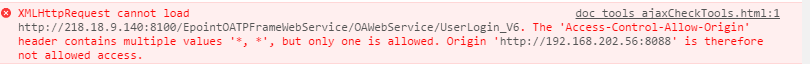 这个请求中, Access-Control-Allow-Origin:*出现了两次,导致了跨域配置没有正确配置,出现了错误。