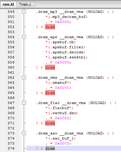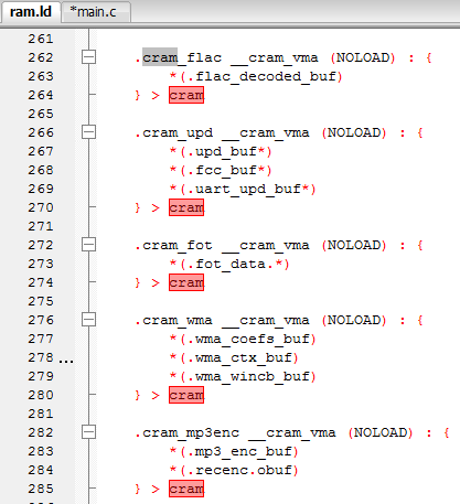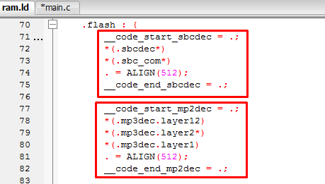 如这里在sbc解码或mp3解码时,可以把这些代码一次性加载到RAM中运行,在解码周期内,不会释放,解码模式完成后,才释放,相当于动态增加了com区,节约解码时间。