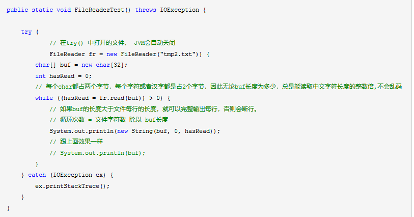 另外,BufferedReader提供一个readLine()可以方便地读取一行,而FileInputStream和FileReader只能读取一个字节或者一个字符,