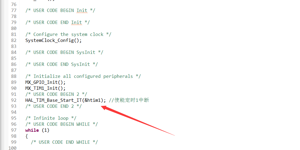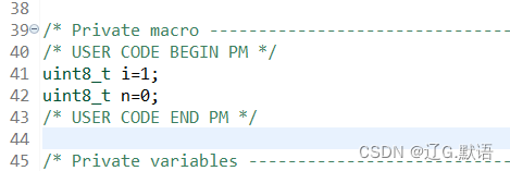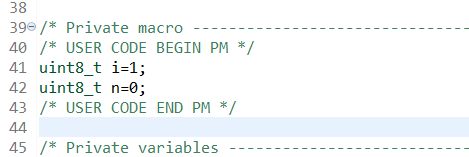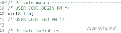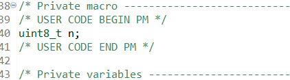 我们定义一个全局变量n(因为我们要在主函数中用又要在中断中使用,所以需要定义为全局变量),在main函数上面定义即可 例如下面位置