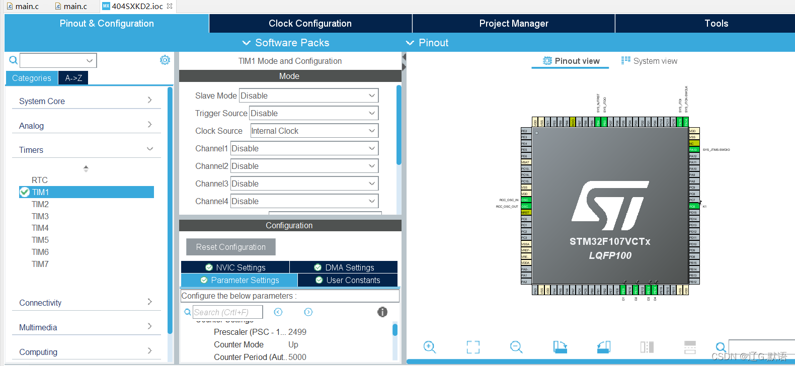 首先我们要配置一下io口和外部中断,如上,定时器我们可以配置溢出时间间隔,每次溢出都会进入中断回调函数,在之前的文章中有讲,不懂配置的可以去看看前面的文章。我简单展示