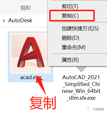 9. 复制步骤1解压出来的acad.exe