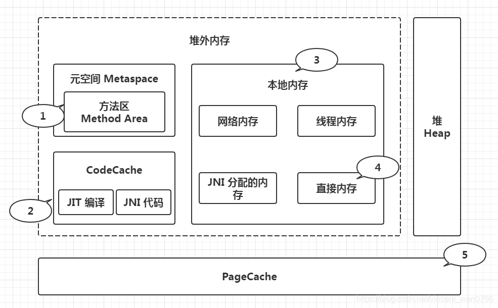 如下图,JVM 的内存,分为堆和堆外内存,其中堆的大小可以通过 Xmx 和 Xms 来配置