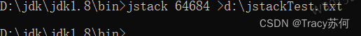 执行命令:jstack 64684 >d:\jstackTest.txt