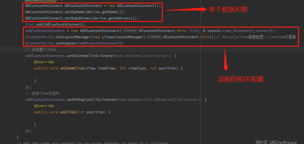 list用于存放要展示的数据,adBluetoothConnect表示适配器