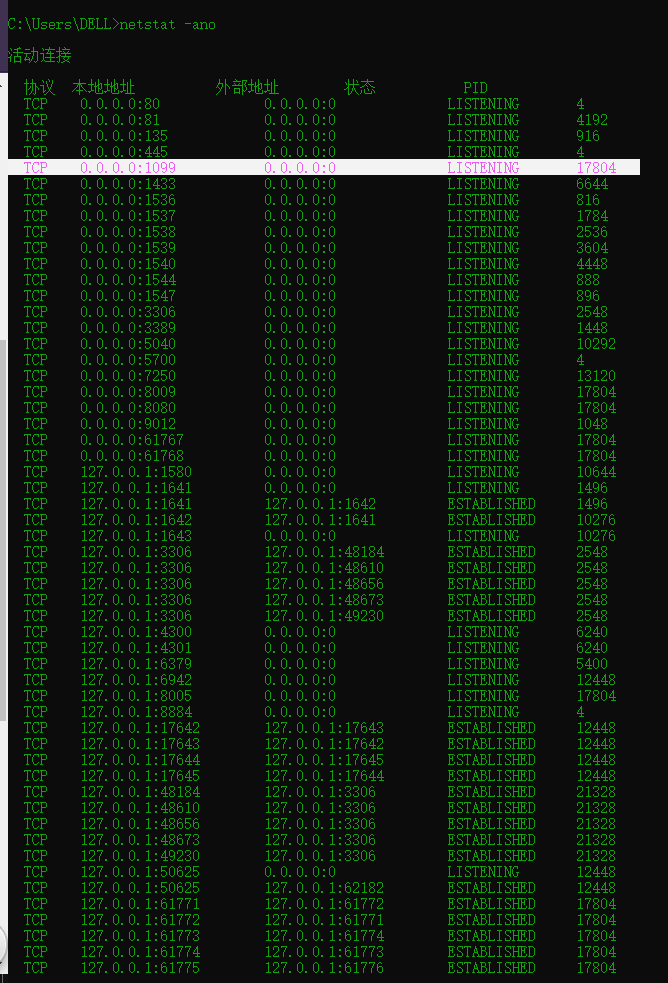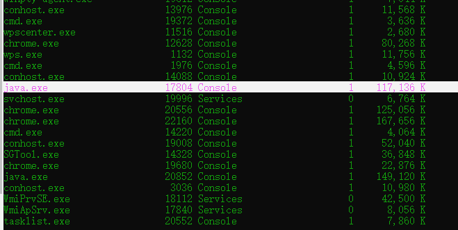 第三步:根据第二步看到的PID17804,输入tasklist找到对应的进程,如下图: