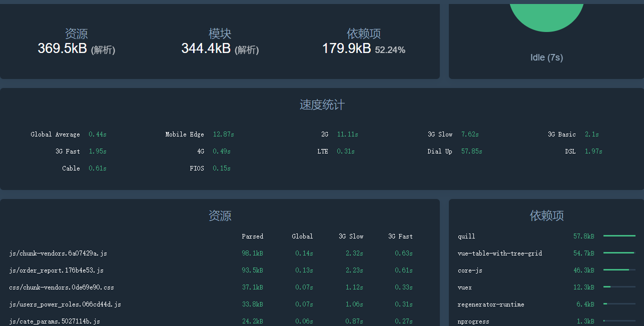 包括各模块体积大小,各资源加载所需时间。