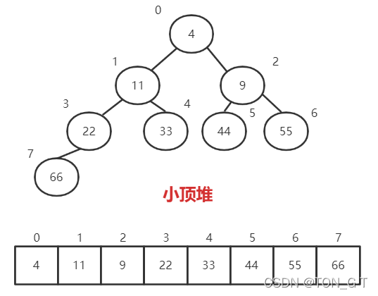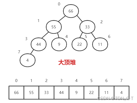 堆排序过程中,是看不到树的结构的,因为使用完全二叉树的性质,用数组表示对应的树结构,又叫顺序存储。