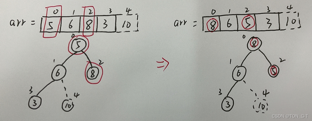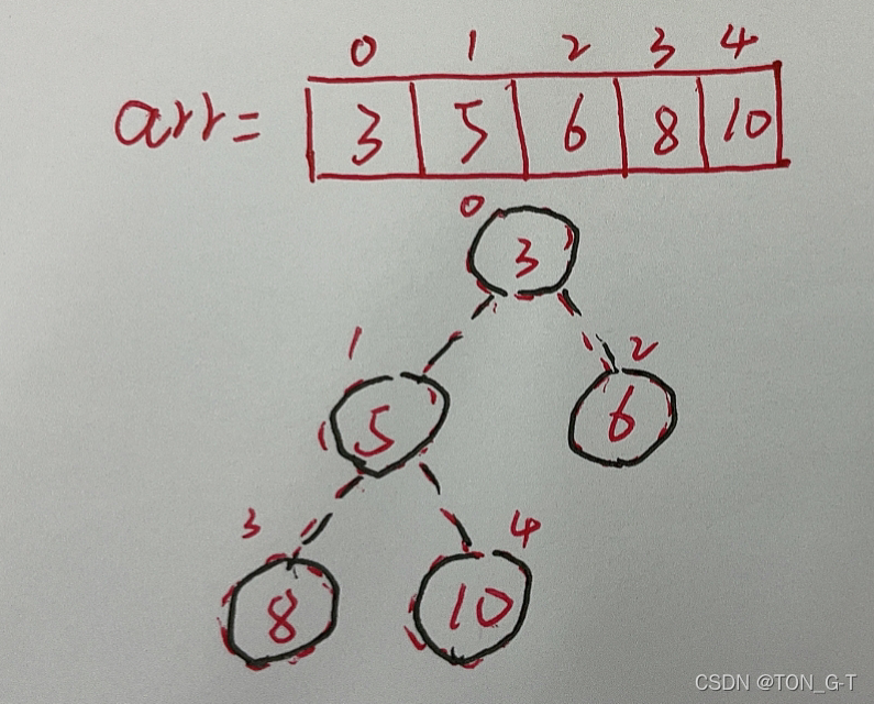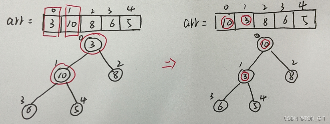 下面以数组[3,5,8,6,10]进行堆排序:
