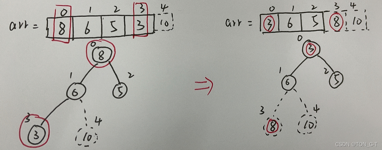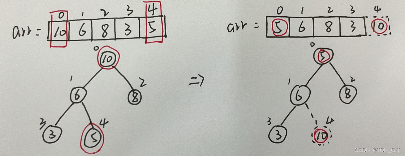 1、将堆顶元素10与末尾元素交换