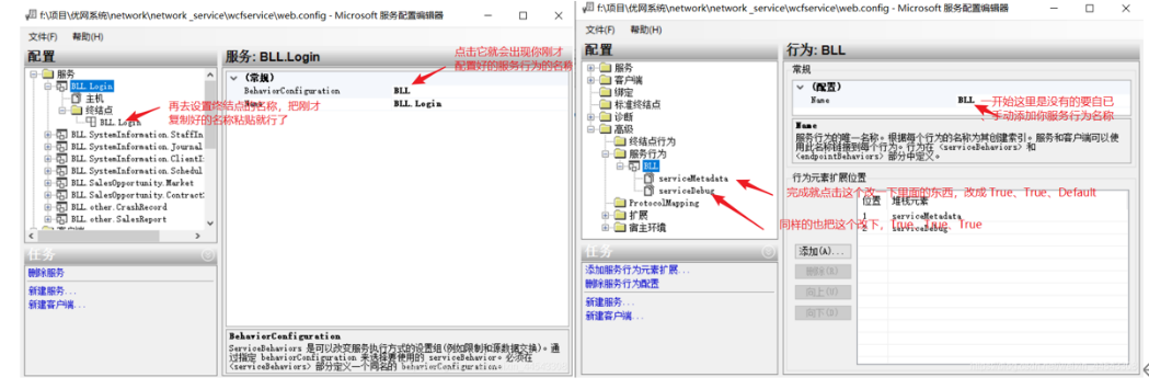 打开你所要新建的服务之后复制一下名称(就是你打开的名字)之后就点击下一步(看到下一步直接点击到最后会出现浏览的地址(http://)把它删除就直接点击完成就可以了),接下来就设置一下它服务行为了,再到改一服务的终结点也就是上面刚配置好的服务行为名称,如图所示: