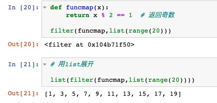 返回的是 filter对象。如果想看具体的数据,需要使用 list来展开。