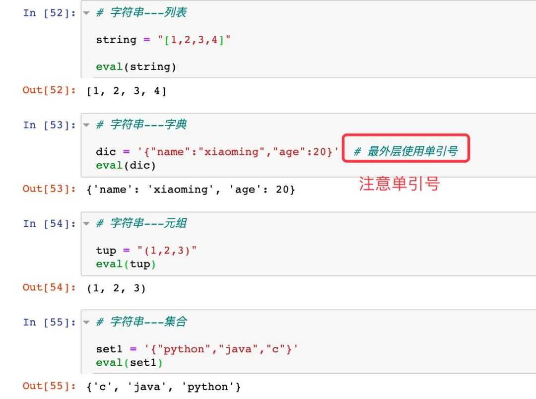 字符串和列表、字典、集合的转化
