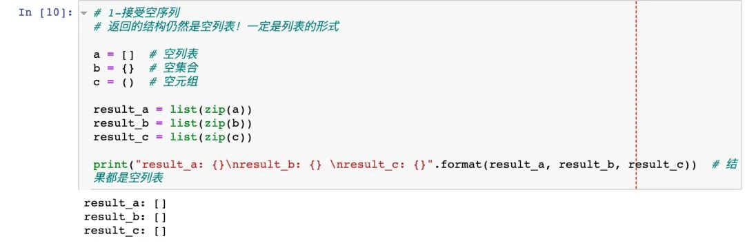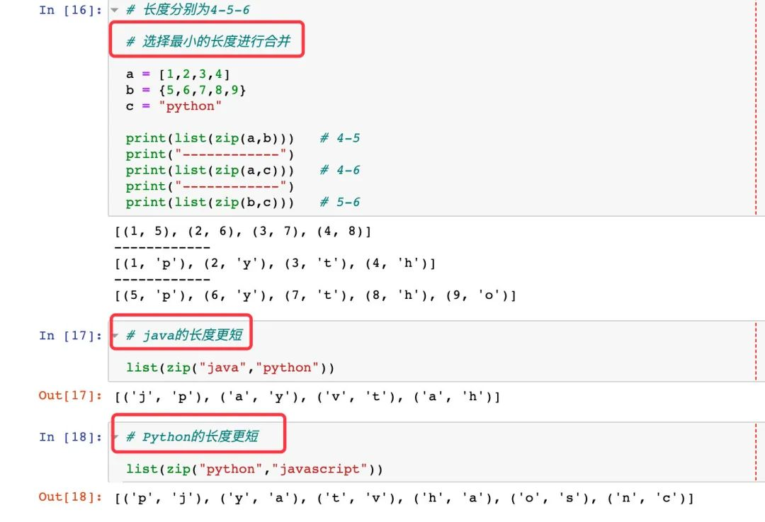 上面的多个元素的长度都是相同的,下面的例子来展示 zip处理不同长度的序列。