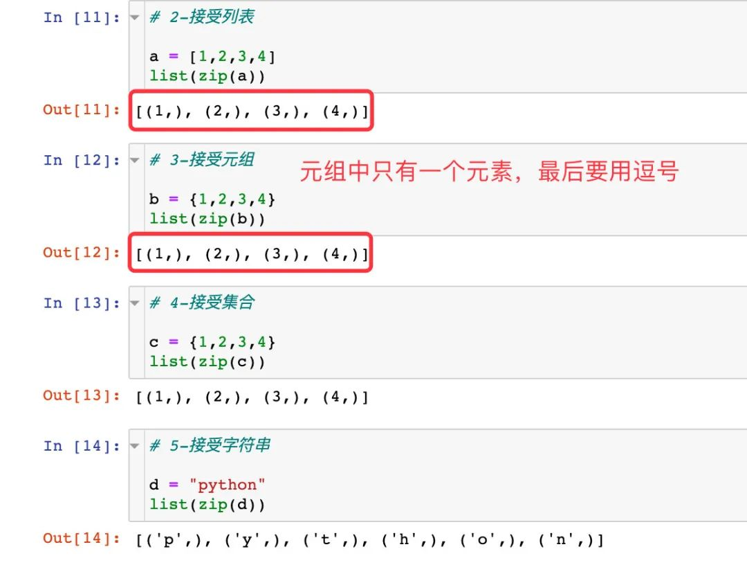 参数可以是 列表,元组,字符串,不改变原对象均可。下面通过具体的例子来说明: