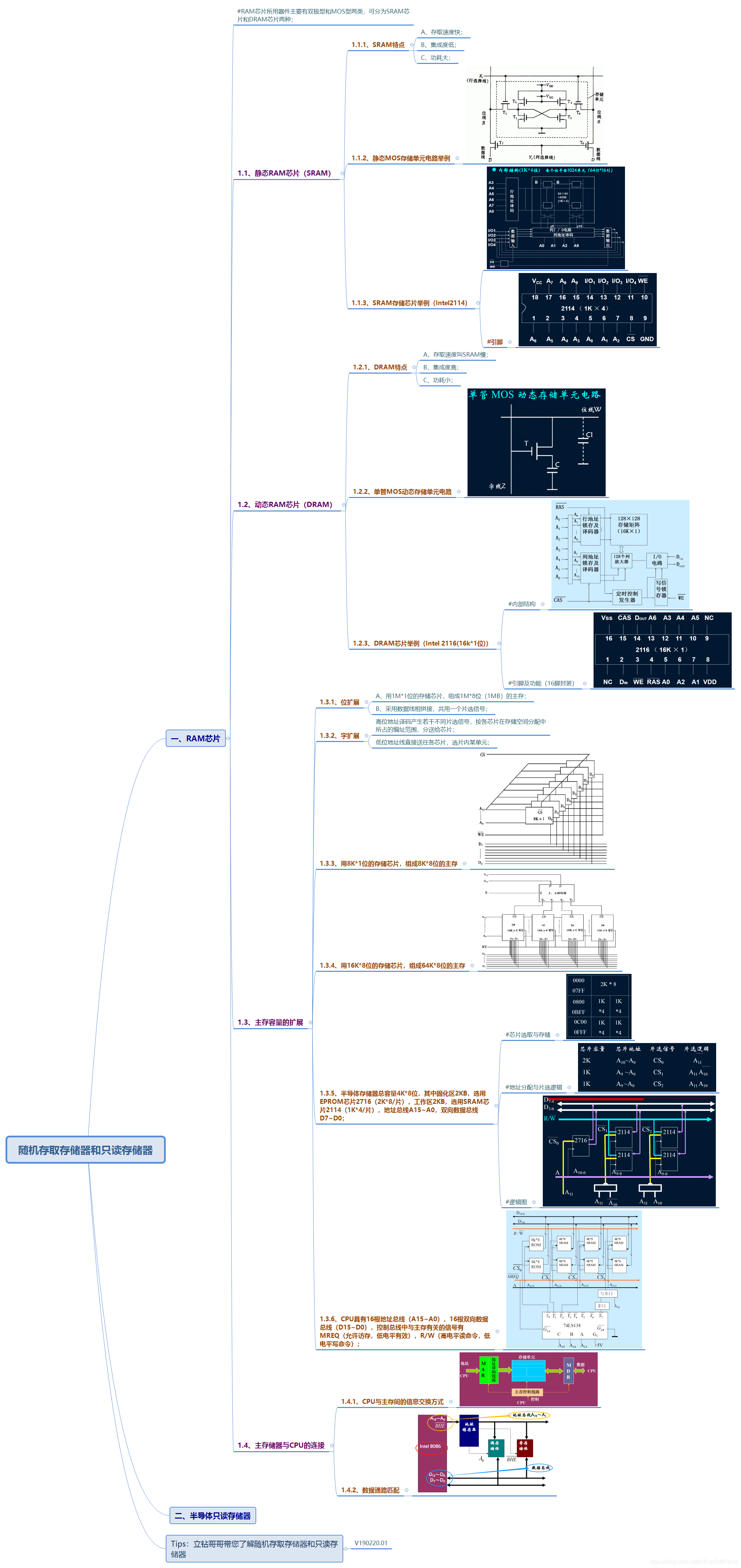 ++++立钻哥哥:RAM芯片所用器件主要有双极型和MOS型两类,可分为SRAM芯片和DRAM芯片两种;