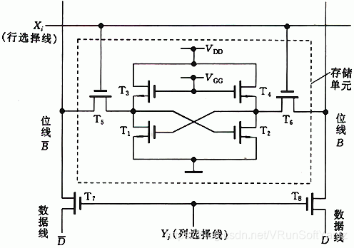 ++++[保持状态]:行选择线Xi低,T5、T6管截止;