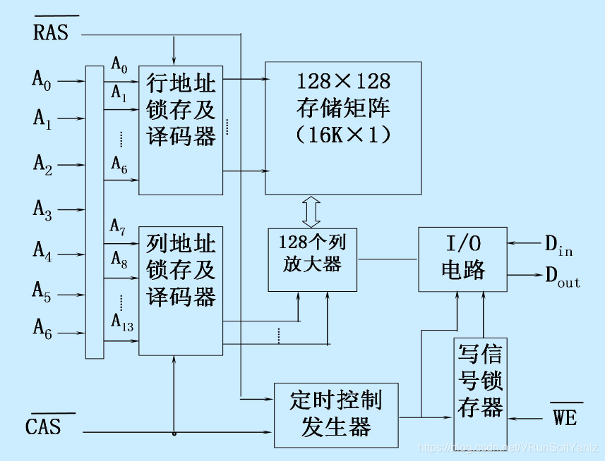 --[RAS|行选,CAS|列选]:低电平将A6~A0作为行或列地址锁存;