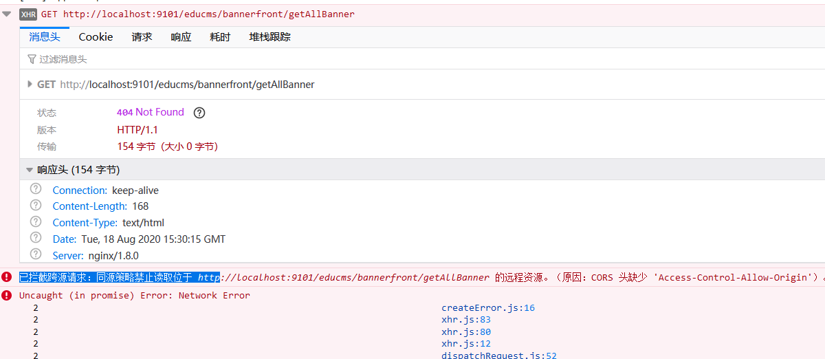 Access to XMLHttpRequest at 'http://localhost:9101/educms/bannerfront/getAllBanner' from origin 'http://localhost:3000' has been blocked by CORS policy: No 'Access-Control-Allow-Origin' header is present on the requested resource.