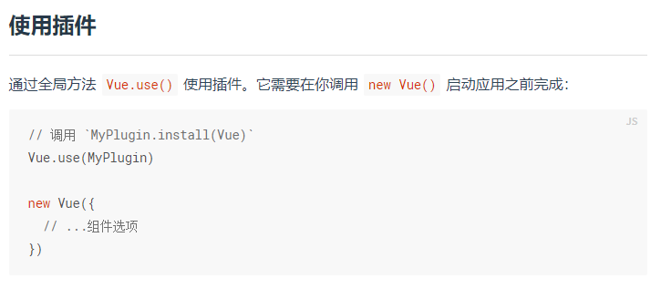 大概意思就是要暴露出来一个install方法,在这个方法里添加一些全局的内容。所以如果有的插件里面暴露出了install方法,就可以用vue.use去引用它
