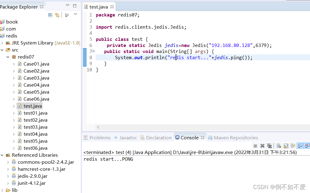 启动redis-server后,java编译执行后发现如图报错: