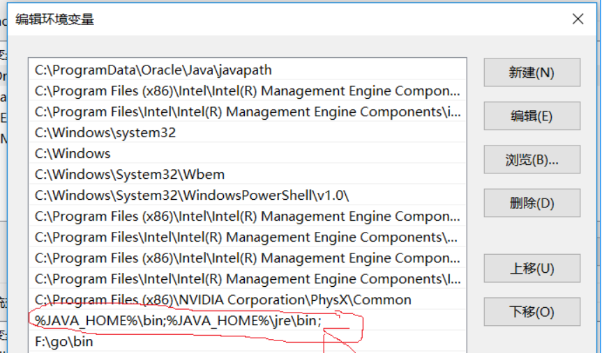 解决办法,查看系统环境变量,win10 中配置换将变量时最后不需要加分号,否则画蛇添足,该系统自动分行,具体情况如下图,只要将分号去掉即可。