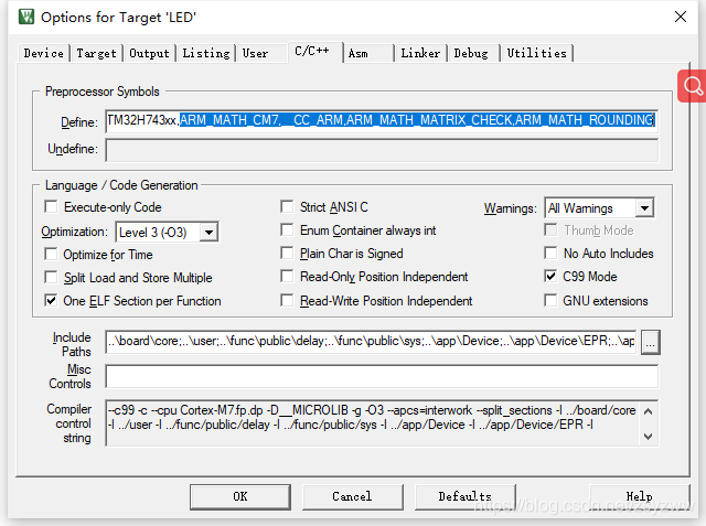 为了方便各位大侠拷贝,这里贴出来具体的配置语句:ARM_MATH_CM7,__CC_ARM,ARM_MATH_MATRIX_CHECK,ARM_MATH_ROUNDING