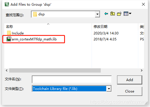 3、移植DSP库进入代码中,我这里使用封装成lib库的dsp库,各位也可以选择源码xx.c