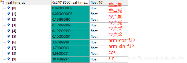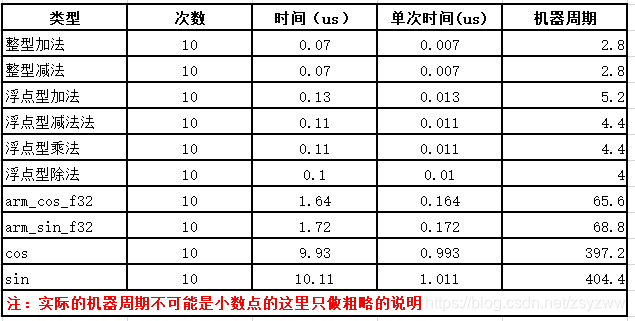 从实验数据可知 加减乘除所耗费的时间基本在10个机器周期,sin和cos则消耗的时间比较多。