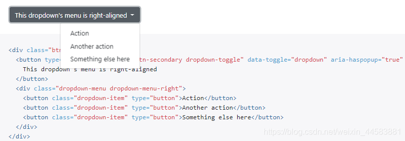 一般情况下,一个下拉菜单自动从顶部和左侧的父级100%定位,添加dropdown-menu-right到dropdown-menu右侧轻松对齐下拉菜单