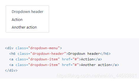 上面一直在介绍下拉菜单的下拉展开,却没有说到菜单标题,现在说一下添加标题来标记任何下拉菜单中的操作部分,其实非常简单,使用一个标题标签就可以完成了