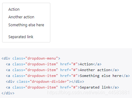 最后还要注意菜单分隔与分割线的问题,使用分隔符分割相关的单子项,呈现出分组和分割线效果,例如:使用dropdown-divider分隔符