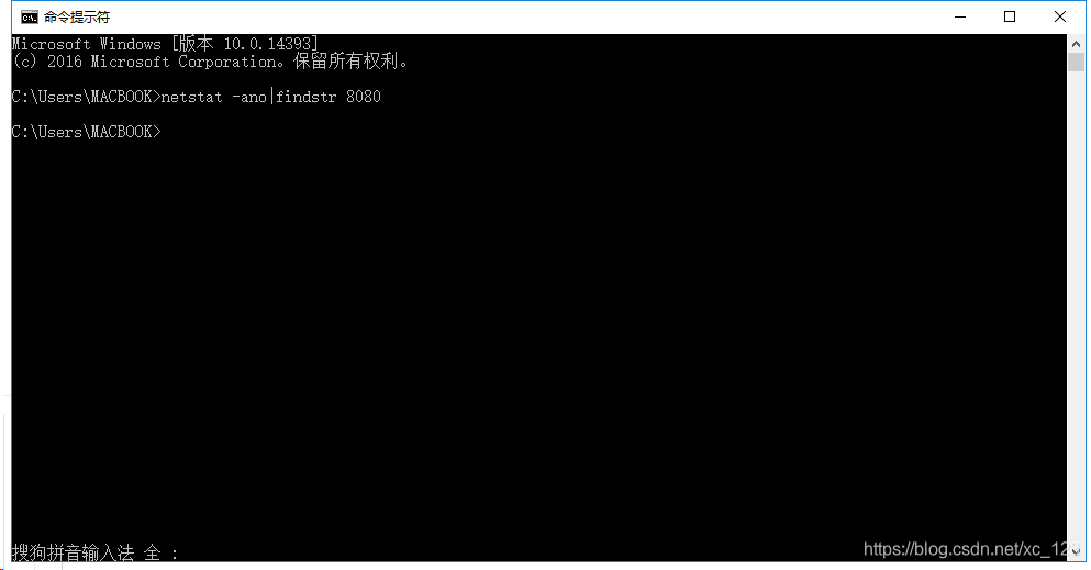 4.再次使用 netstat -ano|findstr 8080 查看是否存在占用8080端口的进程号