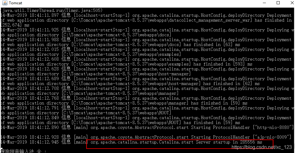 5.输入 startup 启用tomcat