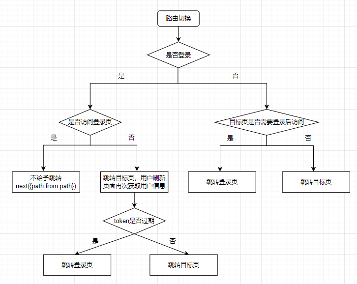 需要做的就是在路由跳转之前使用全局前置守卫router.beforeEach,对跳转的页面和登录状态做判断,具体判断的逻辑如下: