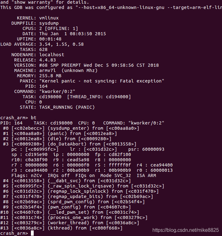 ./crash_arm vmlinux sysdump