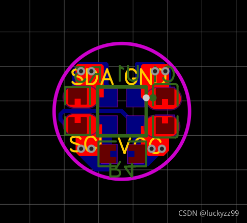 这里加了四个焊盘是为了方便画PCB时方便连线,把原理图转为PCB时我们设置边框为5mm,刚好能装得,元件摆好并布好线如下所示: