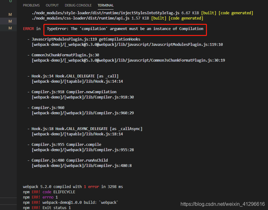 当我们使用 html-webpack-plugin(版本4.5.0)控件的时候 会出现如下错误提示