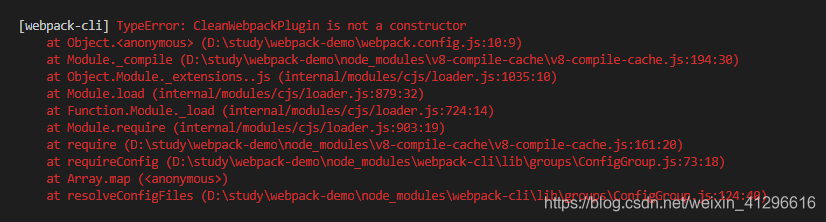 当我使用 clean-webpack-plugin (版本3.0.0)这个控件的时候 也出现错误 (如下图)