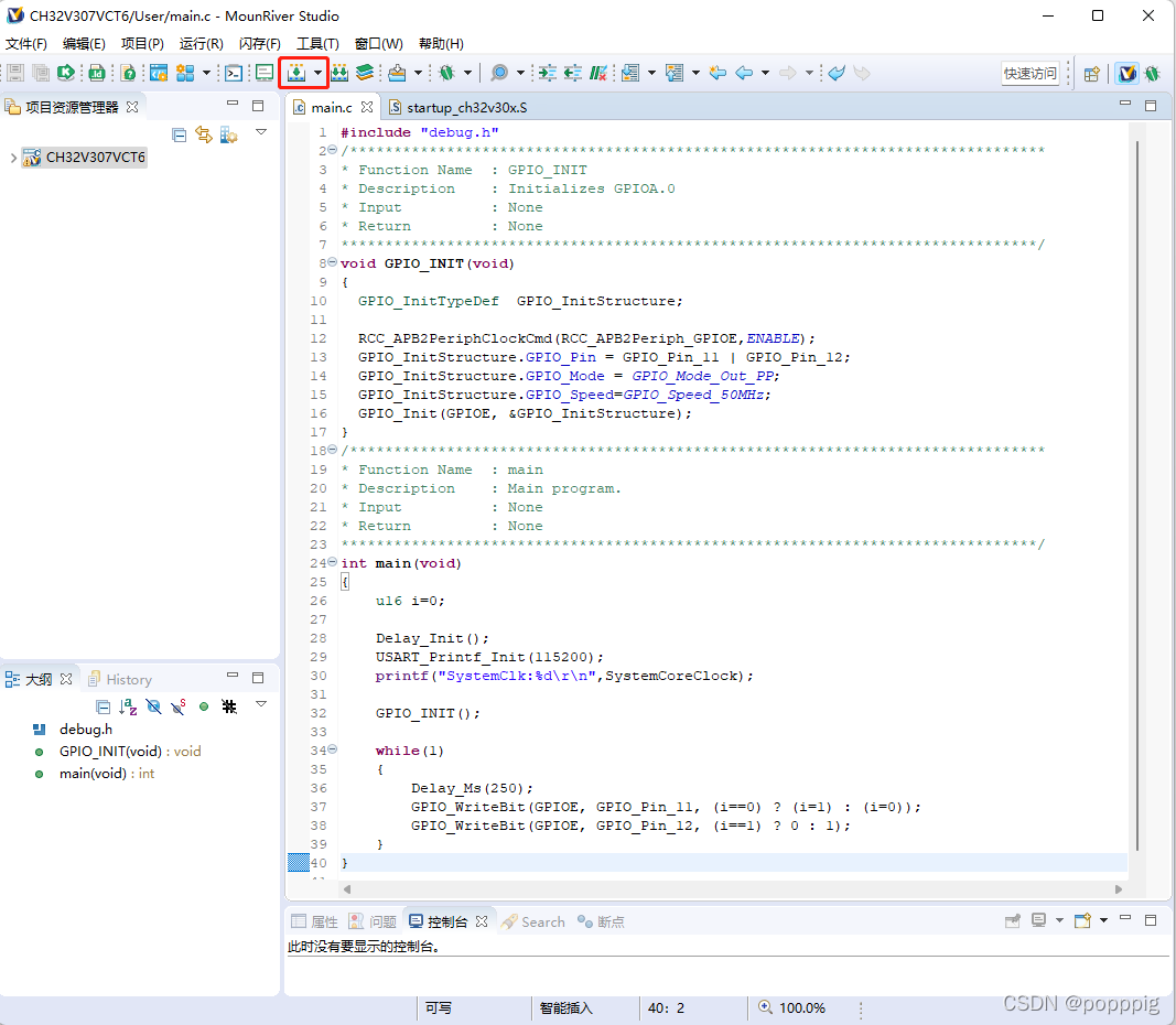 }第二步:在 main() 函数中添加IO口控制代码。