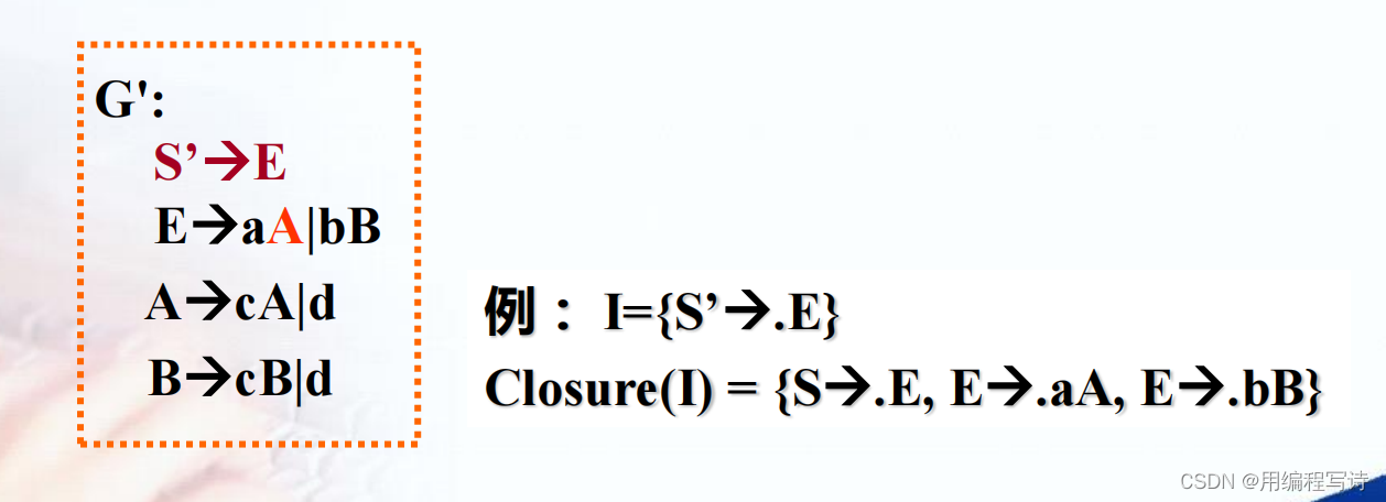 S′→ ·S 为初态集的 核心 项目,然后对其求闭包, CLOSURE({S′→·S} ) 得到 初态的项目集