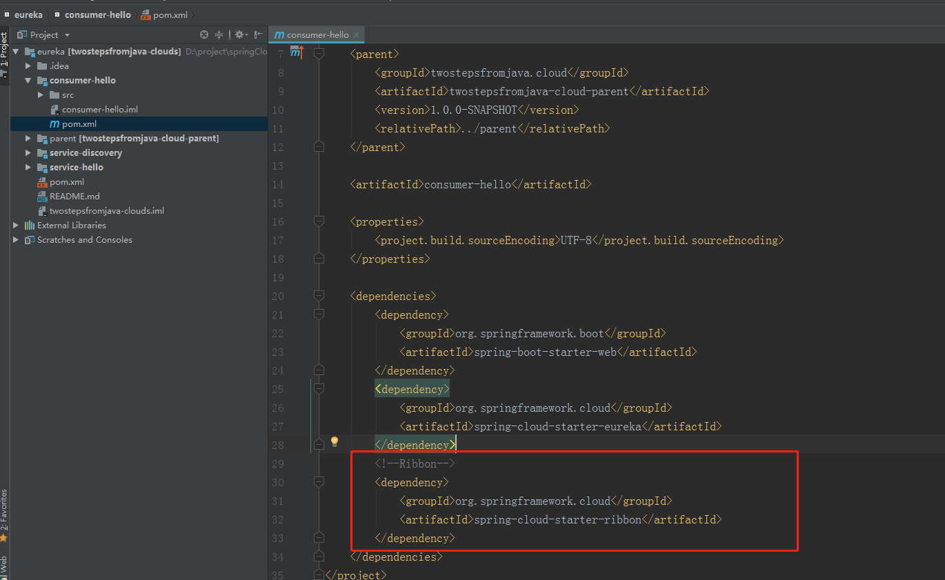 <artifactId>spring-cloud-starter-ribbon</artifactId>