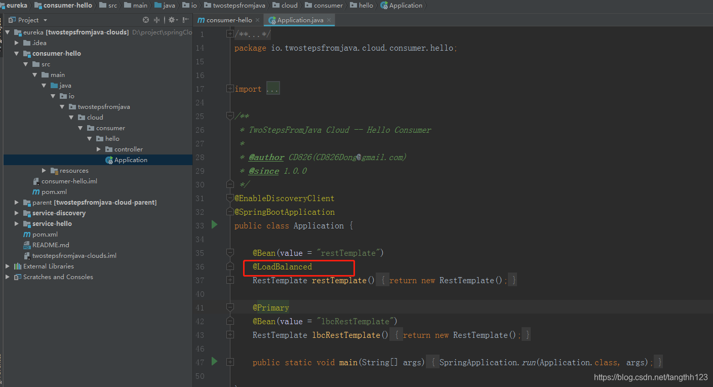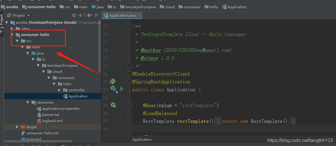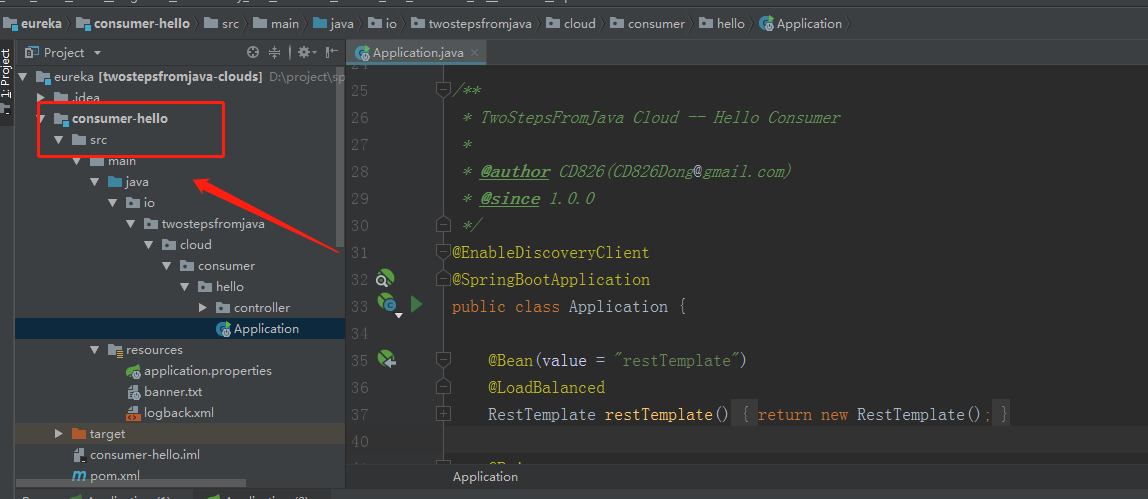 (1)接上篇文章我们搭建好Eureka 服务和消费者之后,整个代码结构如下: