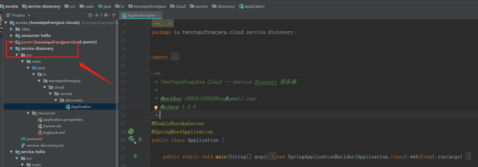 3.1 @EnableDiscoveryClient 说是这是当前的一个Eureka的客户端。
