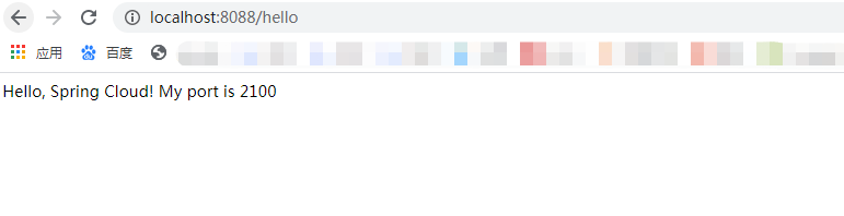 在浏览器上访问 localhost:8088/hello ,可以看到在交互访问,也就是说此时consumer-hello 这个项目 在交替访问 server-hello的2100 和2200 端口。