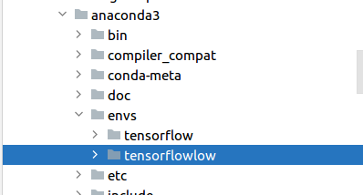 4.找到anaconda目录下的envs,因为我装了两次Tensorfnslow(每创建一个环境,就可以安装一个,不冲突),所以可以看到我这边会有两个这种环境,选择自己安装的那个,选择python文件