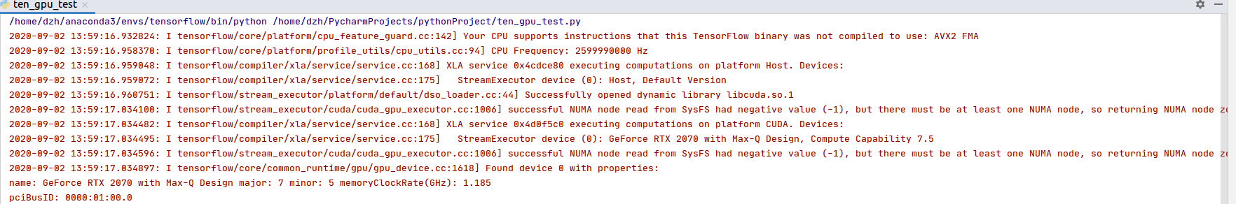 tf.test.gpu_device_name()import tensorflow不报错,就说明安装成功,如果输出结果中包含Gpu信息,说明安装的是GPU版本: