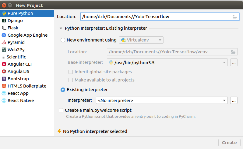 下次创建新项目时就可以直接选择刚刚那个环境: