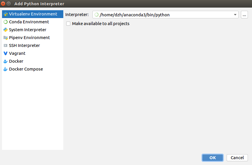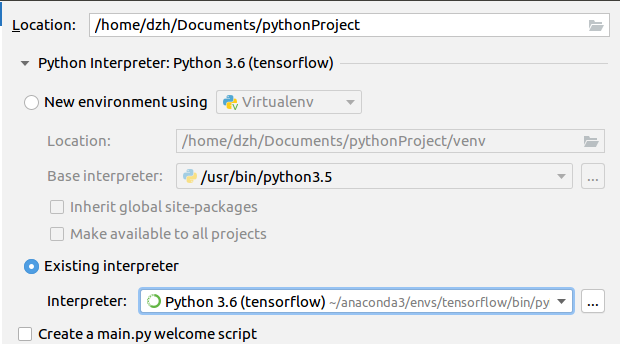 2.默认的应该是anaconda下的python环境,我们点击Existing enviroment: