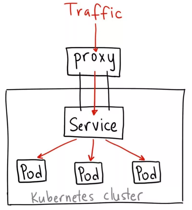 从技术上看,这也许不是最准确的图表,但它表明了 NodePort 的工作方式